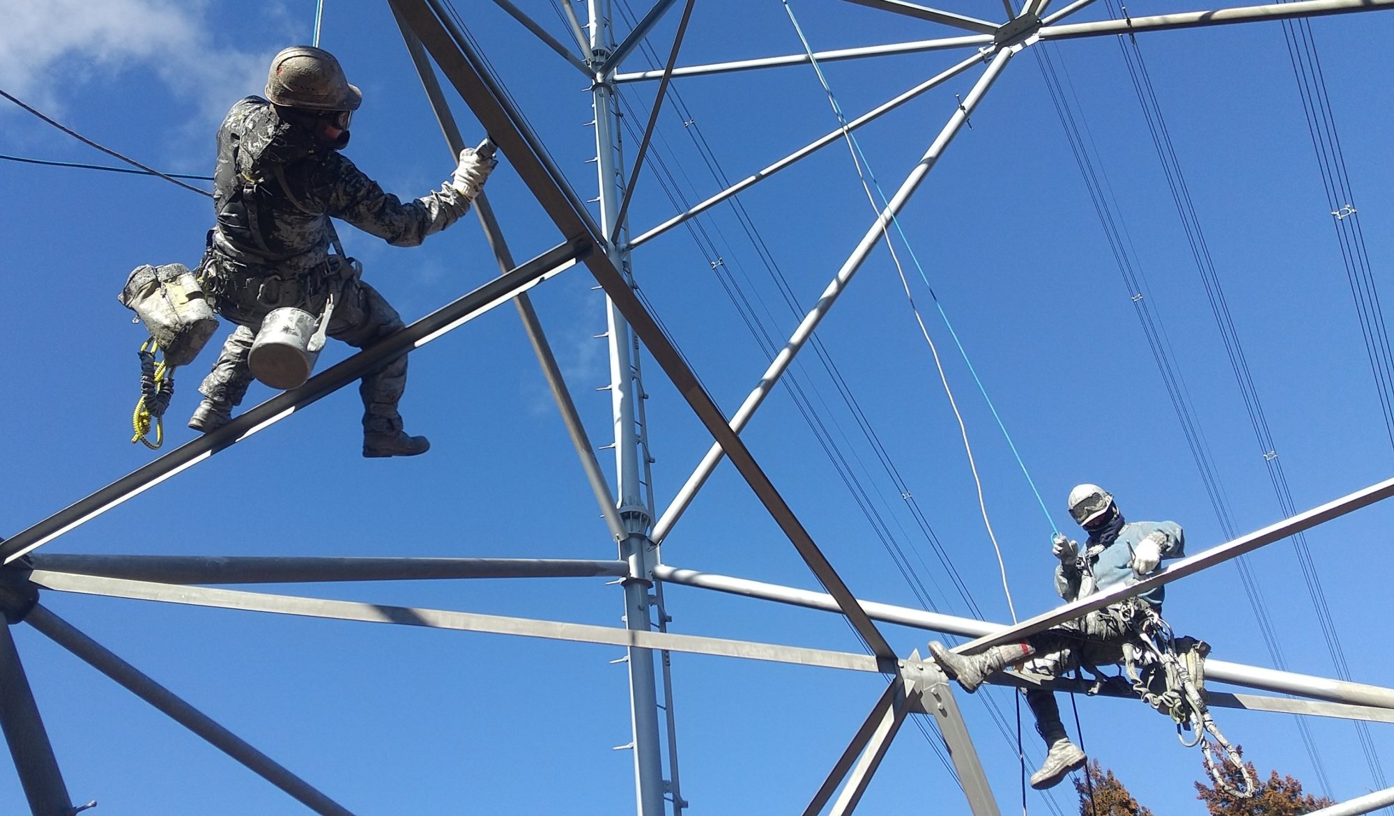 企業局の送電鉄塔防錆塗装工事にドローンを活用しました
